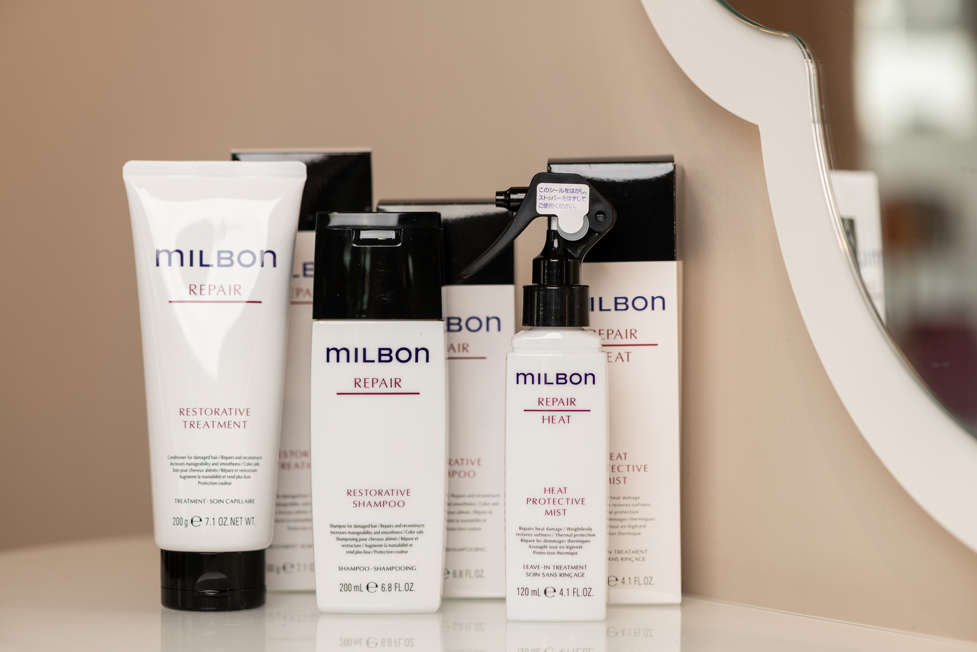Ditt hår fortjener det det beste, derfor finner du i salongen vår et bredt spekter av produkter fra Davroe og Milbon. Dette er produkter vi bruker i de fleste av våre behandlinger – finner du noe du liker kan det kjøpes i vår salong.